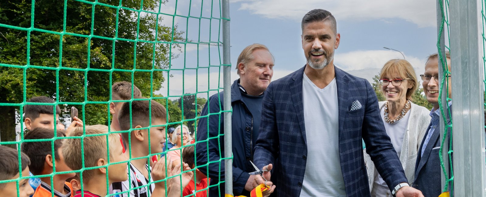 Ihre Einweihungsreden halten Gemeindepräsident Andreas Opprecht und Julia von Ah kurz. Sie wissen, dass die Kinder – viele von ihnen in Fussballtrikots – nur auf eins warten: Dass Pascal Zuberbühler das Band zum Eingang des Platzes durchschneidet und sie sich darauf austoben können. Julia von Ah, Mitglied des Stiftungsrates von PlatzDa, der Organisation, die der Gemeinde Sulgen den Sportplatz geschenkt hat, sagt: «Ich habe gehört, dass der Platz in Sulgen bereits zum Pausenrenner bei den Schülerinnen und Schülern der nahe gelegenen Schule avanciert ist. Das freut mich besonders, denn der Platz soll häufig und von vielen Kindern und Erwachsenen genutzt werden.» Gemeindepräsident Andreas Opprecht bedankt sich in seiner Rede bei seinen Gästen und geht kurz darauf ein, wie Sulgen den Zuschlag für den Platz erhalten hat.