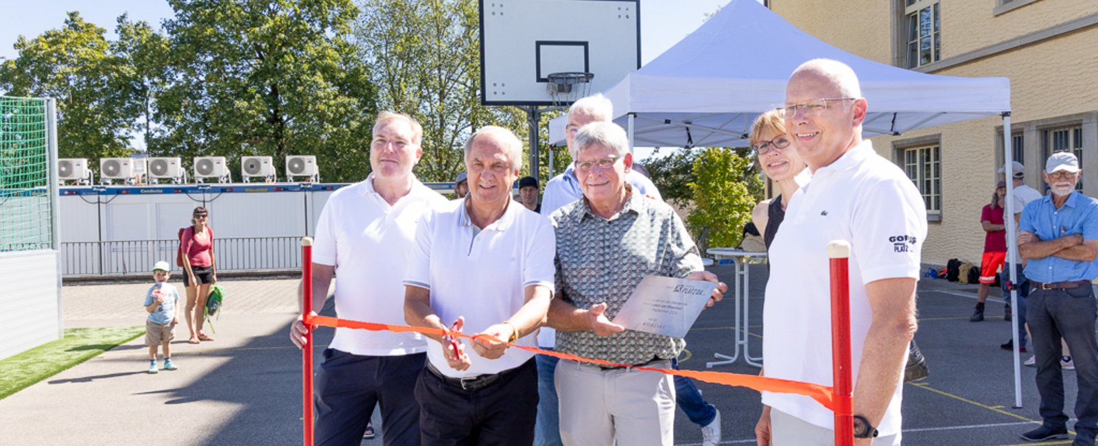 Während sich die Kinder (und einige Väter) beim Plauschturnier über den strapazierfähigen Kunstrasen jagten, stiessen die Erwachsenen beim Apéro auf das gelungene Projekt an
